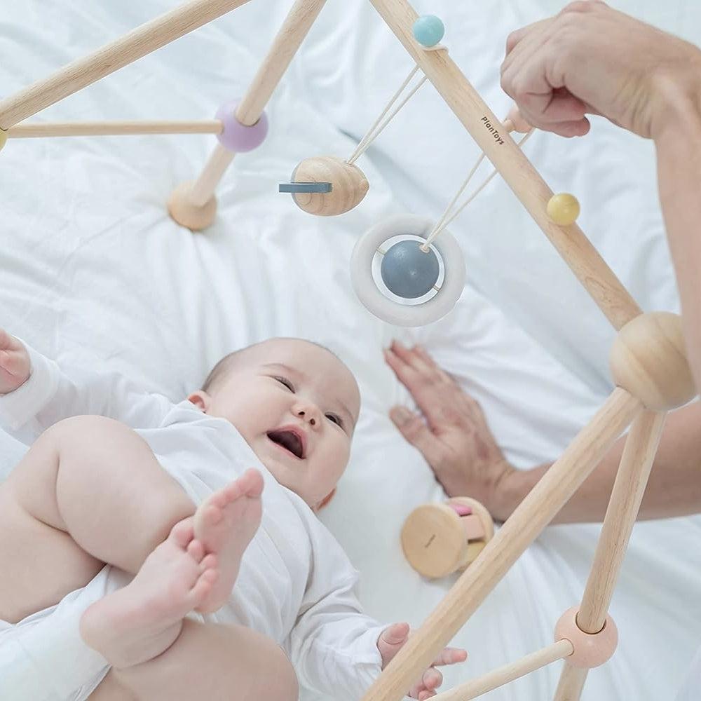For a wooden option that complements your baby’s physical development, consider exploring the Plan Toys Wooden Baby Play Gym. Its non-toxic, sustainable design means your baby can explore safely while building strength.