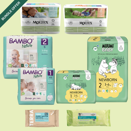 Bambo Nature Eco Nappies & Natural Baby Wipes Newborn Bundle Not sure what size your newborn will need? This carefully curated bundle ensures ...