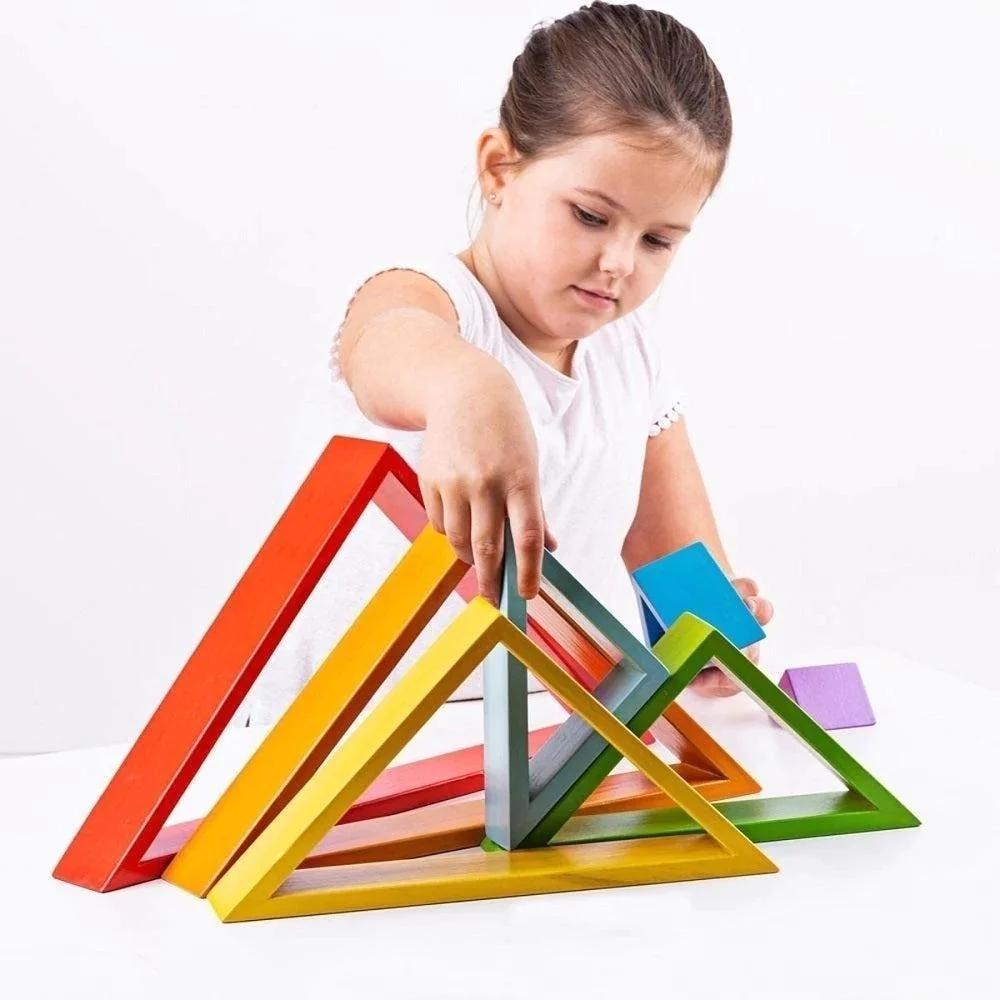 This wooden rainbow toy from BigJigs Toys will encourage toddlers to use their imagination. It has seven different shaped triangles that can be put together in many different ways. Your toddler will have fun making all kinds of unique combinations. It's an open ended toy with toddlers will play with again and again.