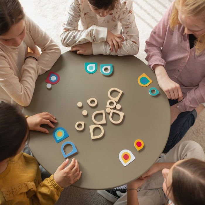An award-winning memory game. Each player takes a card and must now replicate the 3-piece puzzle by taking turns turning the wooden pieces around. Try to remember where the shape and colour you need is, so you can be the first to complete your card.