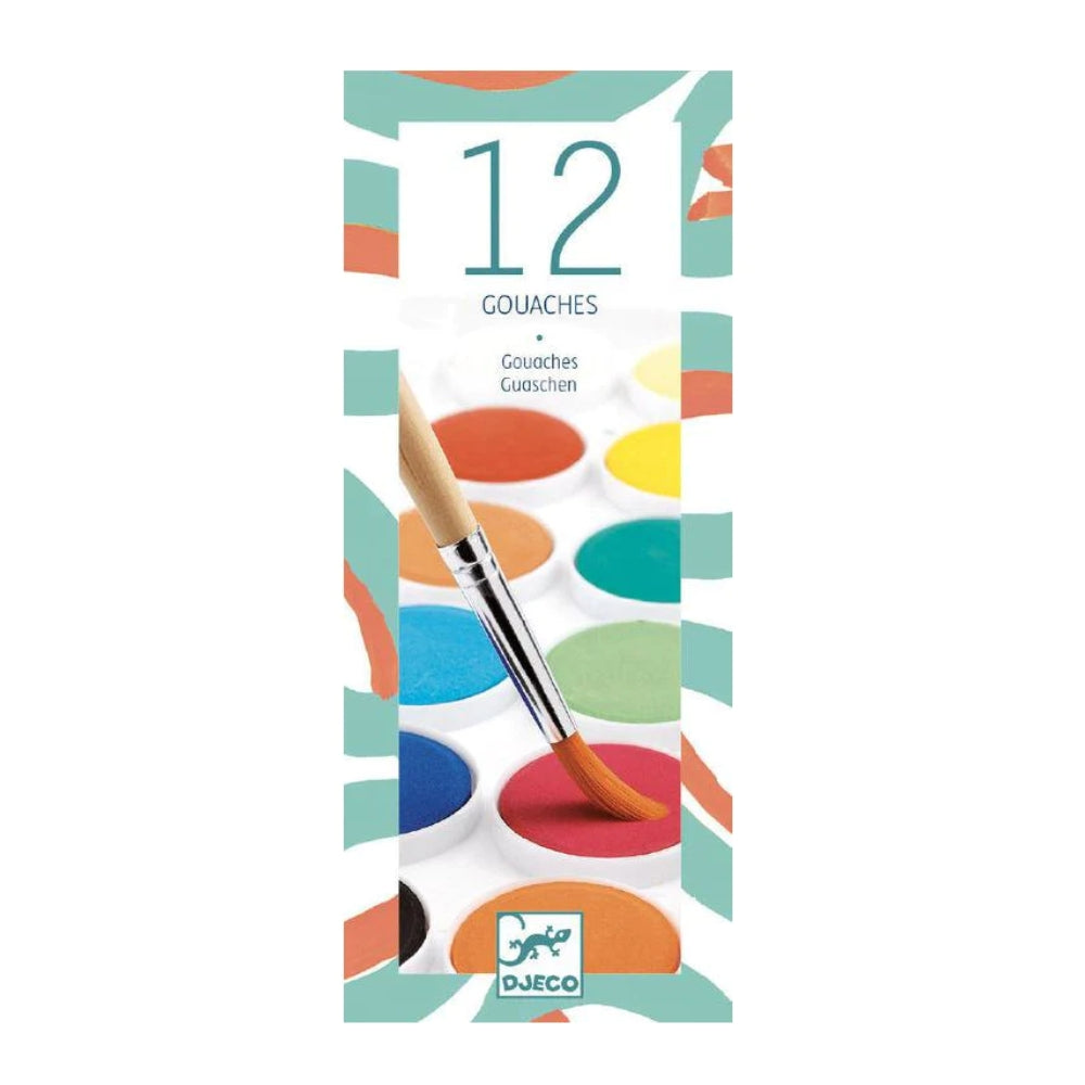 12 beautiful colours and a paintbrush in a handy box that's perfect for travel.