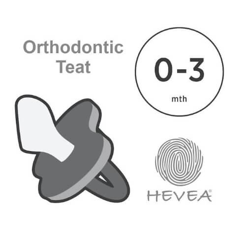 Age: 0 to 3 months, available in orthodontic or round teats.