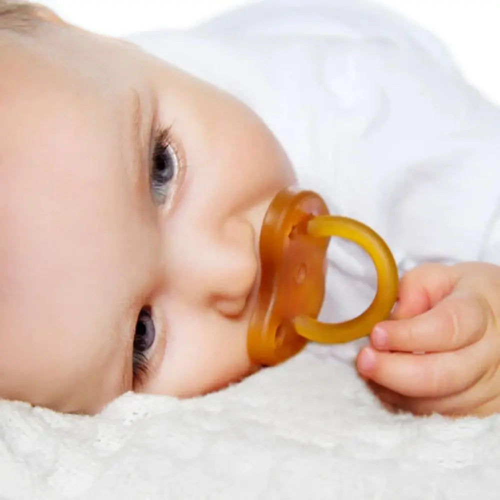 Your Hevea Pacifier may darken over time. This is natural, as there are no antioxidants added to keep it from changing colour.