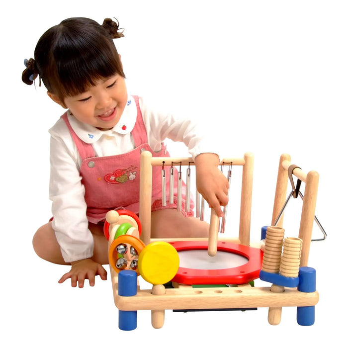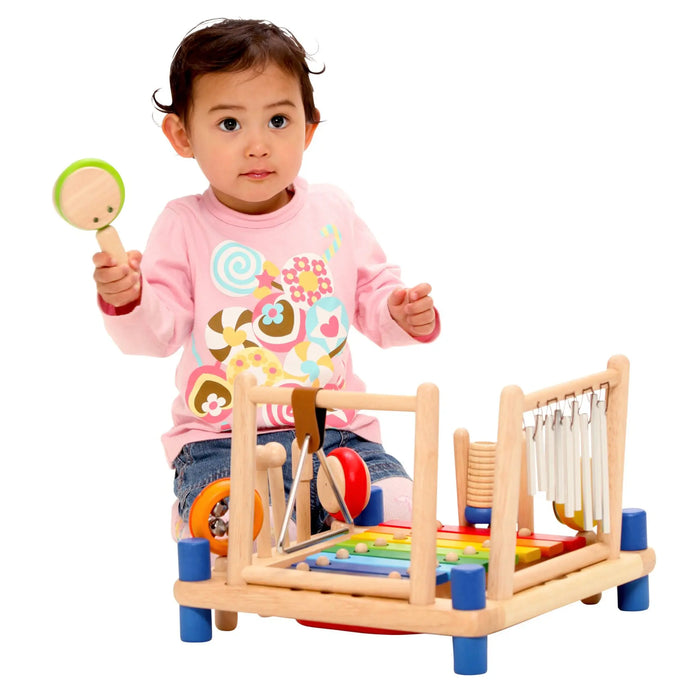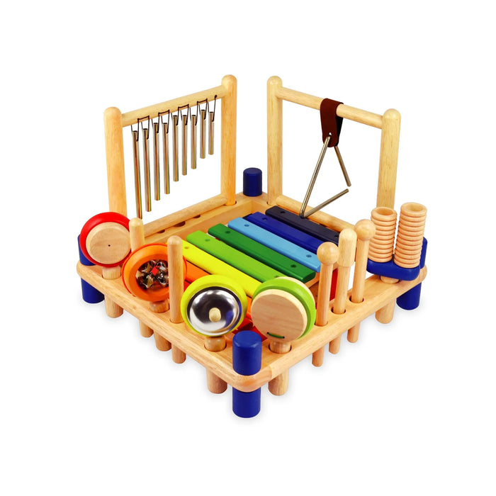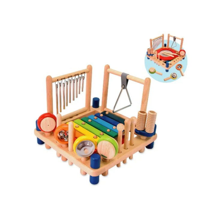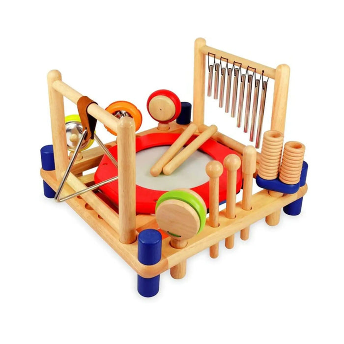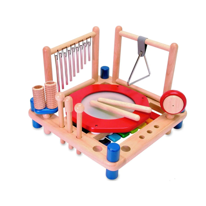 Produced from sustainable rubber wood and finished with non toxic child safe paints and laquers. The drum includes a composite wood part made from low-risk timber species.