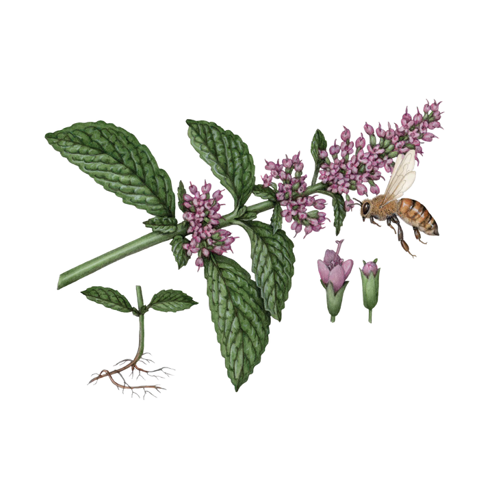 Sugar-based biodegradable alcohol 73%, aqua (purified water), glycerin (plant-based), mentha piperita (peppermint essential oil), melaleuca ericifolia (rosalina essential oil).
