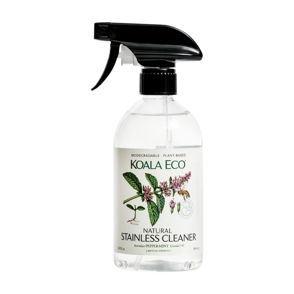 Koala Eco Natural Stainless Steel Cleaner is made from 100% naturally derived ingredients, and it's biodegradable and eco friendly. This natural cleaning product cleans, polishes and protects stainless steel and chrome plated surfaces in your kitchen, bath and laundry area.
