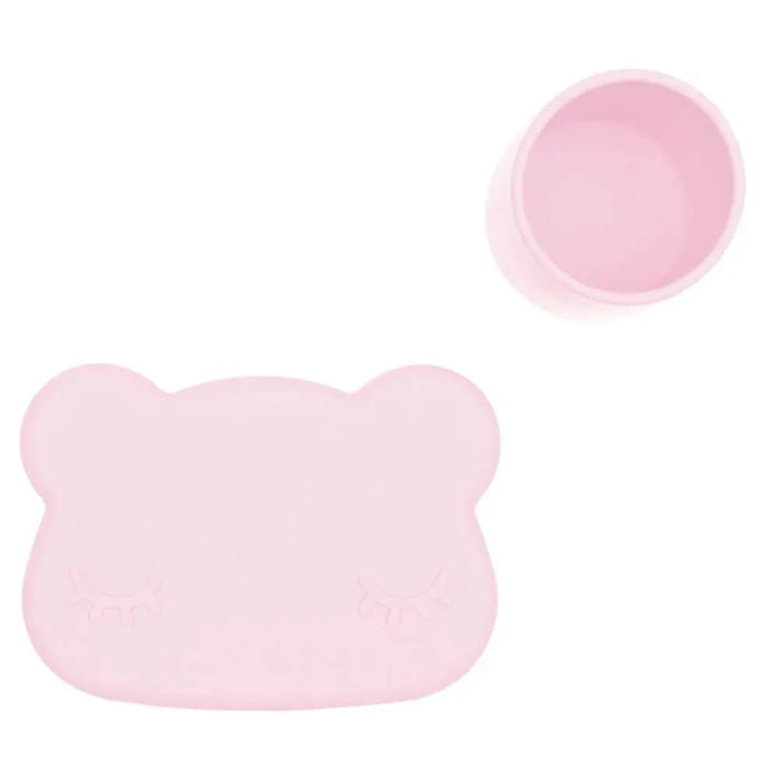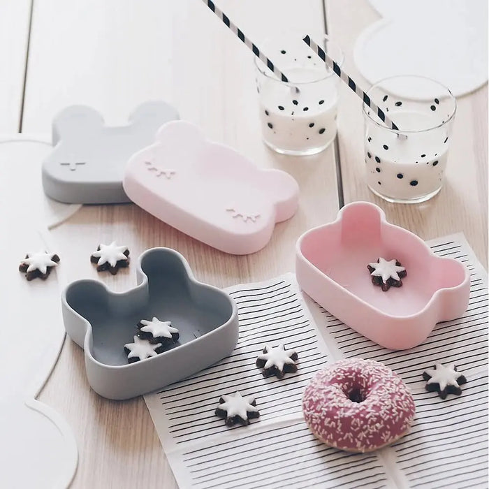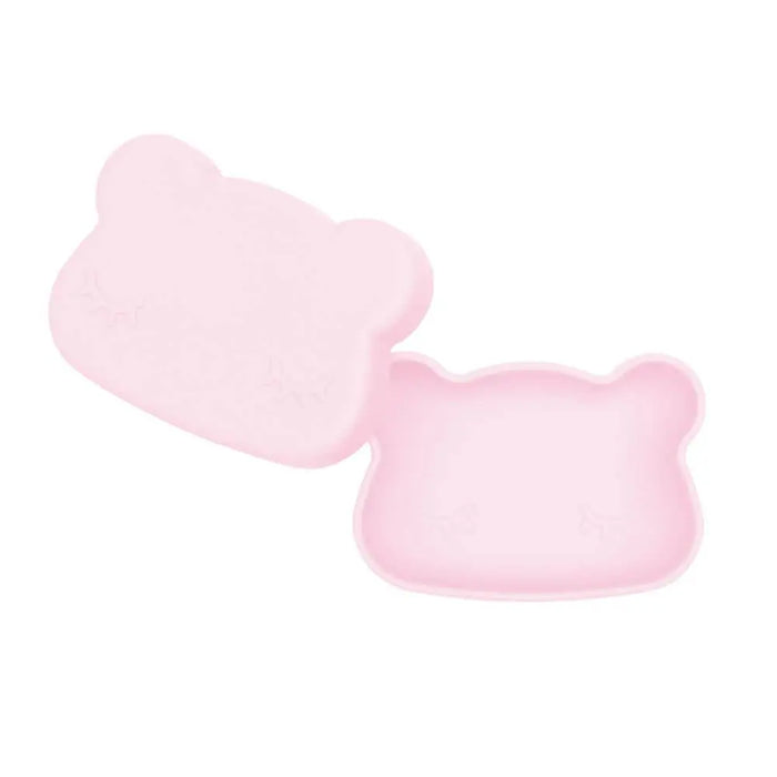 We Might Be Tiny Bear Snackie in Powder Pink is a snack bowl and plate that combines with a silicone strap to make a storage container for getting out and about.