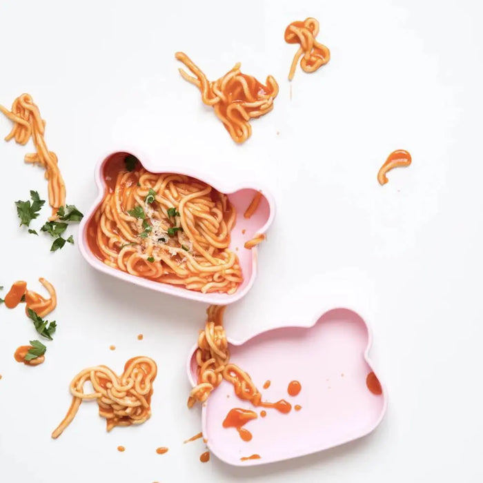 We Might Be Tiny Bear Snackie Powder Pink is great for home or getting out and about. It comes with a handy silicone strap that can be used to secure the snack bowl and plate together for snacks on the go. They’re easy to clean, just pop into the dishwasher. Pair it with the We Might Be Tiny grip cups for a stylish and practical addition to your dinner table.