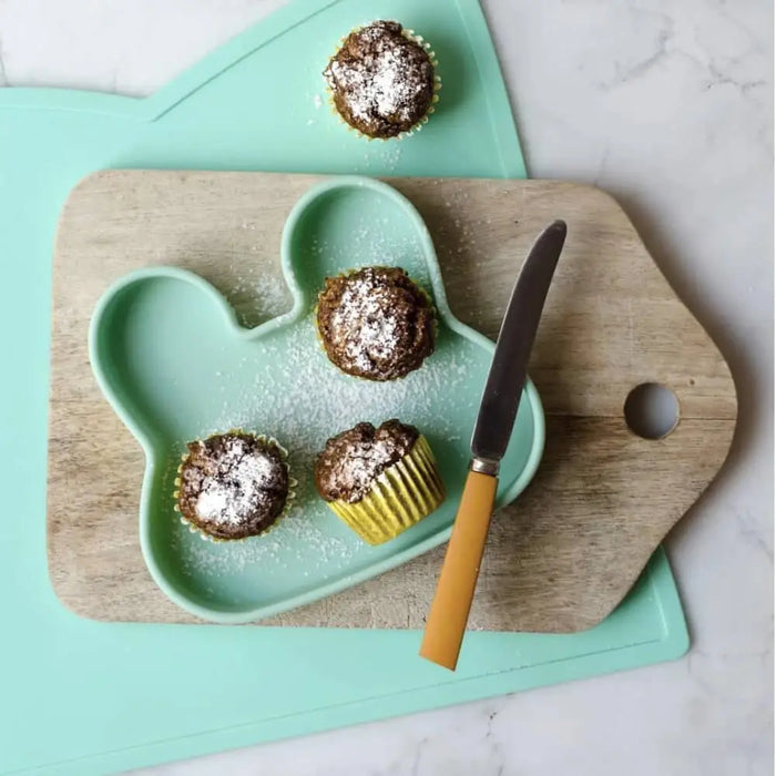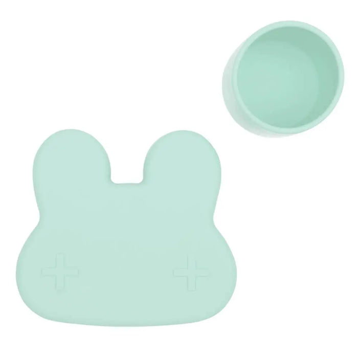 We Might Be Tiny Bunny Snackie Minty Green is a snack bowl and plate that combines with a silicone strap to make a storage container for getting out and about.